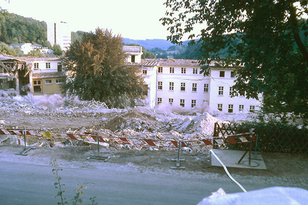 „Es war nicht verfrüht, dass das alte Krankenhaus ersetzt wurde“, findet Dr. Walter Schäfer. Die alten Räume, in denen noch seine Bewerbungsgespräche stattfanden, habe er als „abgewrackt“ in Erinnerung. Als das alte Krankenhaus 1986 abgerissen wurde, hatte Heidrun Oberlies einen Platz in der ersten Reihe, sie wohnte noch im Schwesterhaus, das gegenüber lag. Auch Frank Fuhrmann kann sich noch erinnern. Als es das erste Mal geknallt hatte, habe es jede Menge Rauch gegeben. „Da ist dann aber nur eine Krähe durchgeflogen, vielleicht der letzte Bewohner…“ Dann sei ein zweites Mal gezündet worden und die altehrwürdigen Mauern fielen in sich zusammen, erzählen sie.