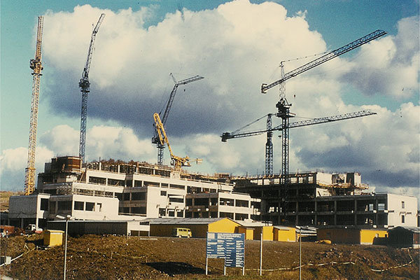 Frank Fuhrmann startete tatsächlich seine Ausbildung zum Pfleger vier Wochen vor dem Umzug noch im alten Krankenhaus an der Brückenstraße. „Wir hatten damals Trainingseinheiten im neuen Gebäude, auch mit Rollenspielen, wo der 'Patient' zum Röntgen gebracht werden musste und wir sind mit dem Rollstuhl über die Flure gefahren“, erinnert er sich. „Und wir haben uns hoffnungslos verlaufen“, lacht der heute 63-Jährige, der später lange Zeit Stationsleiter auf der Inneren war und inzwischen IT-Projekte umsetzt. Noch bevor das neue Gebäude in Betrieb ging, habe Fuhrmann, der auch im Rettungsdienst mitfahren sollte, noch einen Einsatz dort gehabt. „Ein Verwaltungsangestellter hatte sich das Bein gebrochen – wir mussten ihn aus der neuen Klinik in die alte Klinik in die Brückenstraße bringen“, erzählt er.