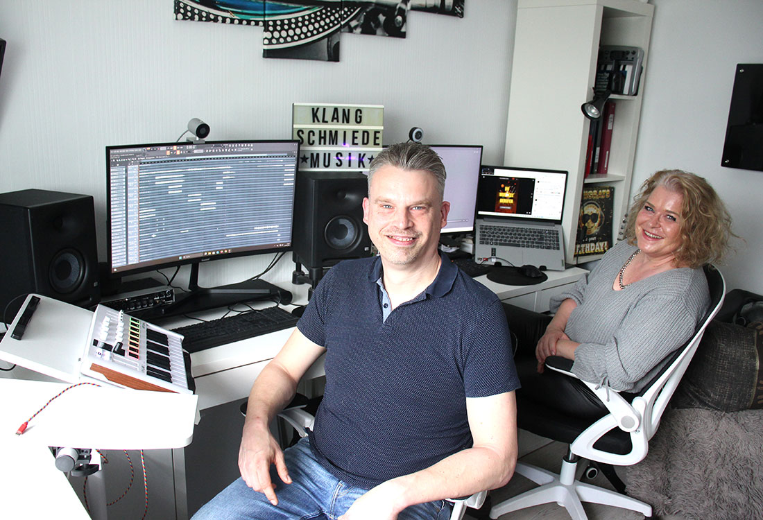 Das Klangschmiede Studio rufen die beiden Anfang des Jahres ins Leben. Für Tofaute nicht das erste musikalische Projekt: Im Hauptberuf Pflegefachkraft, produziert der 44-Jährige bereits seit mehr als zehn Jahren professionell Musik, unter anderem unter seinem Alias Timothy Sparks. Die Klangschmiede ist aber explizit ein Gemeinschaftsprojekt mit seiner Partnerin Claudia Sokoll. Die 50-jährige Spezialistin für digitales Marketing hatte schon immer ein Musikfaible, was sie auch – aufgewachsen in der Nähe Magdeburgs - auf die vielen Musicalfilme im DDR-Fernsehen zurückführt. Im Oberbergischen ist sie bereits seit mehr als 20 Jahren, vor 2,5 Jahren lernte sie den Bochumer Tofaute im Internet kennen – inzwischen ist der 44-Jährige offiziell Wiehler und tauschte den Pott mit dem Land ein.