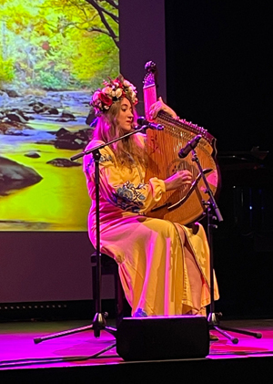 [Svitlana Nikonorova hat auf der Bandura, einem ukrainischen Instrument, gespielt.]
