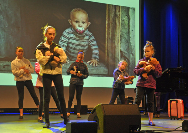Im Hintergrund der Bühne wurden auf einer Leinwand Bilder von ukrainischen Landschaften, Städten und Gebäuden gezeigt. „Ich war überrascht, wie schön dieses Land ist“, sagte Missbrandt beeindruckt. Besonders berührt habe sie jedoch eine Szene, als Kinder mit Teddybären und Koffern auf die Bühne traten. Die 17 jungen Tänzer stellten nach, wie sie vor ihrer Flucht ihre Trolleys gepackt haben und in eine ungewisse Zukunft aufgebrochen sind.
