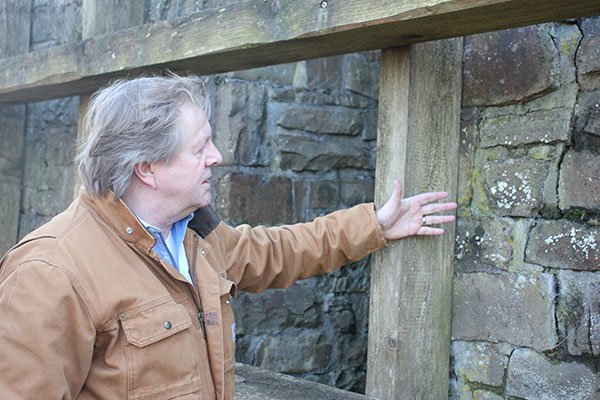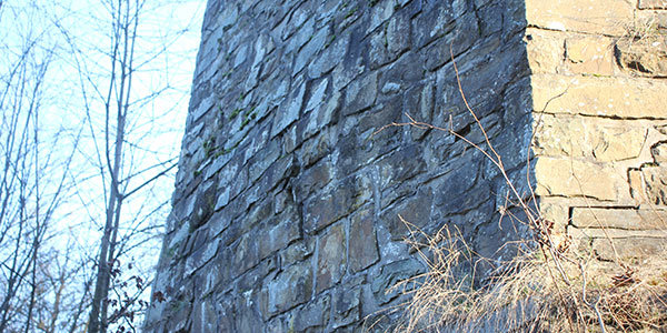 Ein Besuch vor Ort zeigt leider beeindruckend, in welchem bemitleidenswerten Zustand das Wiehler Wahrzeichen ist (Hier gibt es mehr zur Historie). Vor allem die Entscheidung, bei einer Sanierung des Bauwerks Mitte der 1970er-Jahre eine Feuerschale zu entfernen und stattdessen eine Aussichtsplattform aufzumauern, sollte sich als folgenschwer herausstellen. Die Schale schützte den Turm auch vor dem Wetter. Nachdem diese weg war, drang über Jahrzehnte Feuchtigkeit ins Denkmal. Der Verfüllung im zweischaligen Mauerwerk sackte immer weiter ab und drückte gegen die Außenwand. Inzwischen sichert ein Holz-Korsett den abgesperrten Turm, damit er unten nicht auseinandergedrückt wird. Und so wachsen schon allerlei Pflanzen aus dem Turm heraus. So mancher Riss wird immer größer. Stoffel hält es nicht für ausgeschlossen, die Schutzzone um den Bismarckturm herum bald noch vergrößern zu müssen.