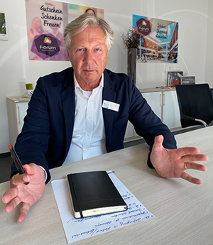 Stimmen der Vergangenheit, das Forum würde die „alte Innenstadt“ ausbluten lassen, erteilt Muchow eine klare Absage, man sei stetig gemeinsam gewachsen. „Wir hatten 2019 unser bisher umsatzbestes Jahr, die ersten Monate bis zum Lockdown waren ähnlich stark.“ Das habe sich aus seiner Sicht auch in der übrigen Innenstadt bemerkbar gemacht: Der sogenannte Zentralitätsfaktor ist seit Eröffnung des Forums stetig gestiegen. Kurzum: Mehr Menschen haben die Kreisstadt seither besucht und für steigenden Umsatz bei Dienstleistern und Einzelhändlern auch außerhalb des Forums gesorgt. Weitere Synergien für den Handel sieht Muchow auch bei der Etablierung von „Showrooms“ lokaler Autohändler in seinem Haus, die keinesfalls als Notlösung gegen Leerstand, sondern sogar als Zukunftsmodell fungieren sollen. „Die Erstberatung zum neuen Auto findet im Forum statt, der eigentliche Vertragsabschluss erfolgt dann im Autohaus.“