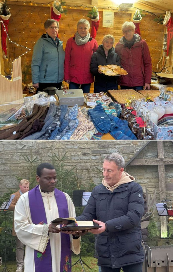 Die Ortsgruppe Lichtenberg der katholischen Frauen Deutschlands betreute den einzigen Verkaufsstand der Veranstaltung, sieht man von den leckeren Speisen und Getränken ab, die der MVL an seinen Buden zum Verzehr anbot. In wochenlanger, fast ganzjähriger Vorarbeit hatten an die zwanzig Mitglieder der Ortsgruppe Socken gestrickt, Karten und Weihnachtsdeko gebastelt, Marmelade eingekocht und zu guter Letzt auch Plätzchen und Kuchen gebacken sowie Waffelteig angerührt. Alle Produkte wurden zugunsten der Engelskirchener „Stiftung Lichtbrücke“ verkauft, die es sich zur Hauptaufgabe gemacht hat, die soziale Ausgrenzung ärmster Familien in Bangladesch zu beenden und extreme Armut durch bewährte Hilfsprojekte zu überwinden.