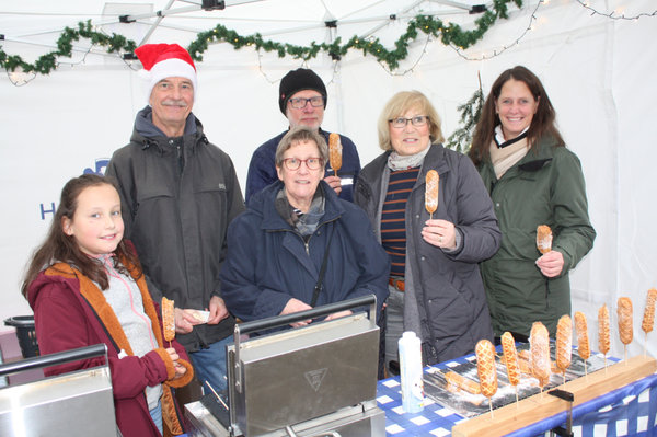 Neu im Amt als Bürgermeister der Schlossgemeinde richtete Thomas Hellbusch sein Willkommen an die Budenzauber-Besucher, dankte allen Helfern, den Mitarbeitern von Verwaltung, Bauhof und den Sponsoren für ihren Beitrag zum Gelingen der Veranstaltung. „Denken Sie daran: Weihnachten ist die Zeit zum Runterkommen und zum Genießen der Ruhe“, appellierte der Rathauschef. Mit Glühwein und Waffeln am Stiel warben die Mitglieder des Heimatvereins Nümbrecht um ihre Vorsitzende Elke Holländer-Pracejus um Kunden, benötigt der ehemalige „Verschönerungsverein“ doch Gelder für die Pflege von Ruhebänken und die Komplettsanierung der mutwillig zerstörten Schutzhütte in der Nähe des Aussichtsturmes.