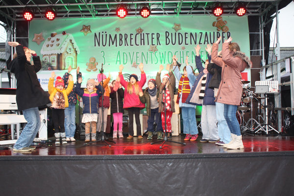 Als Gesamtkunstwerk vieler Ortsvereine präsentiert sich an diesem Wochenende der vierte Nümbrechter Budenzauber auf dem stimmungsvoll dekorierten Dorfplatz. Um die zentrale Bühne, von der aus die Musikfabrik, der Posaunenchor Wirtenbach, DJ Pierre Weidenbrücher, der Schulchor der Grundschule Grötzenberg und der Kinderchor der MGB Bierenbachtal das Weihnachtsmarktpublikum mit einem attraktiven Töne-Repertoire unterhielten, gruppierten sich zahlreiche festlich geschmückte Hütten. Als „Hüttenwirte“ fungierten Ehrenamtliche aus der Nümbrechter Vereinslandschaft, die eine Großauswahl herzhafter Spezialitäten, süßer Leckereien und wärmender Getränke für ihre Gäste bereithielten.