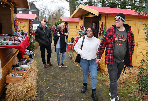 Die Gemeinschaftsgrundschule Frielingsdorf und der Kindergarten Sankt Apollinaris bieten in ihren Ständen viele kreative und selbstgemachte Produkte an. Für besonders tierische Momente sorgen Alpakas, die es sich in einem Pavillon gemütlich gemacht haben. Noch bis Sonntag findet der kleine Weihnachtsmarkt statt. (krj)