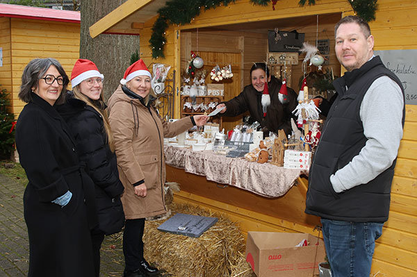 Schüler der HGN-Schülerfirma BeMo (Betrieb und Mobilität) hatten Weihnachtsbäume aus Astscheiben, Rentiere aus dem 3D-Drucker, Gipsdeko, Backmischungen und Honig aus der Bienen-AG im Angebot. Der HGN-Abi-Jahrgang Q 1 ließ die Hände im Ho-Ho-Hotdog-Stand fliegen, wo der Winter-Special mit Laugenstange, Weihnachtsrotkohl, Wurst, Käsesauce und Röstzwiebeln über die Theke ging. Elsenrother Köstlichkeiten wie heimische Kartoffeln mit unterschiedlichen Toppings, Winterlillet mit gefrorenem Beerenobst oder den süffigen Apfelzauber brachten Carsten Puhl und Nicole Deile vom Gemeinnützigen Verein Elsenroth unters Volk. Als Azubis der Brehmer-Group fabrizierten die angehenden Industriekauffrauen Anna und Carolin Apfelpfannkuchen „mit und ohne Äpfel“, deren Verkaufserlös dem Tierheim Koppelweide und der Aktion Lichtblicke zugedacht war.