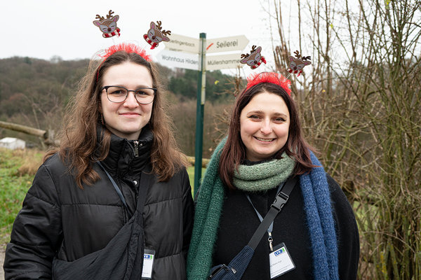 [Was den Besuchern besonders gefällt und was ihnen eventuell noch fehlt, waren Fragen, die Kendra Kessenich (li.) und Lisa-Marie Joye – beide studentische Hilfskräfte des LVR-Freilichtmsueums – den Besuchern des Adventsmarkt auf sehr nette Art stellten.]