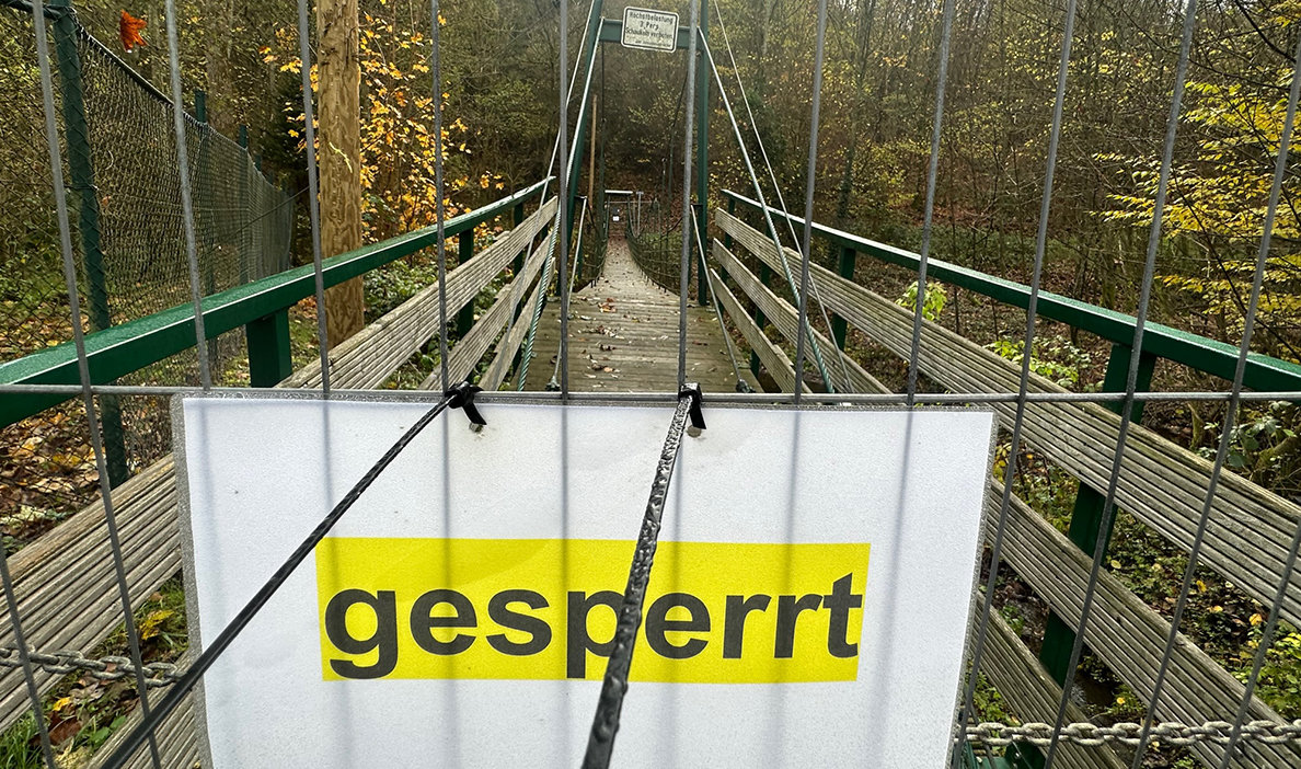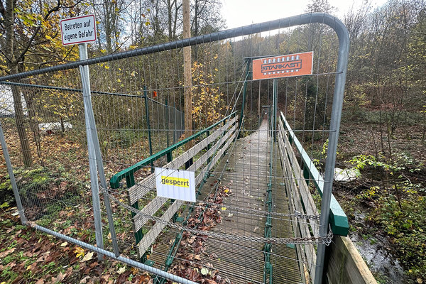 Die Zukunft der Hängebrücke über der Wisser sorgt in Morsbach für reichlich Diskussionen – zuletzt auch zwischen Bürgermeister Jörg Bukowski und Vertretern des örtlichen Heimatvereins. Bei einer turnusmäßigen Überprüfung aller Brückenbauwerke in der Gemeinde sei festgestellt worden, dass die 1928 gebaute und zuletzt 2015 sanierte Brücke nicht mehr verkehrssicher ist. Jedes Element für sich sei schadhaft, berichtete Bukowski auf Nachfrage. Dementsprechend habe er keine andere Wahl gehabt, als die Brücke zu sperren. Zahlreiche Bürger befürchten nun einen Abriss der Brücke und wandten sich an den Heimatverein, der folglich öffentlich Kritik übte.