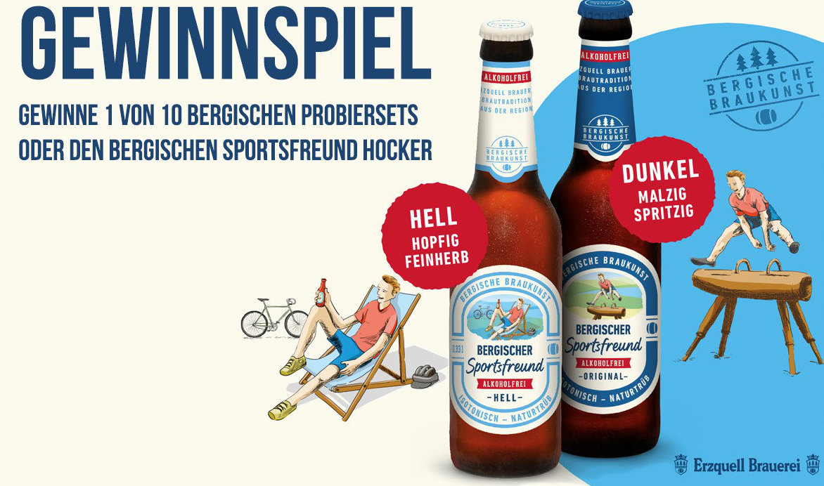 Die Erzquell Brauerei verlost zusammen mit Oberberg-Aktuell zehn Probiersets mit dem Bergischen Sportsfreund und den anderen Spezialitäten der Bergischen Braukunst. Mit etwas Glück kann man auch einen exklusiven Sportsfreund Lederhocker im sportlichen Retro-Design gewinnen. Jetzt mitmachen und einfach dem Bergischen Sportsfreund und dem Account von Oberberg-Aktuell auf Instagram folgen und den Beitrag zur Verlosung liken.