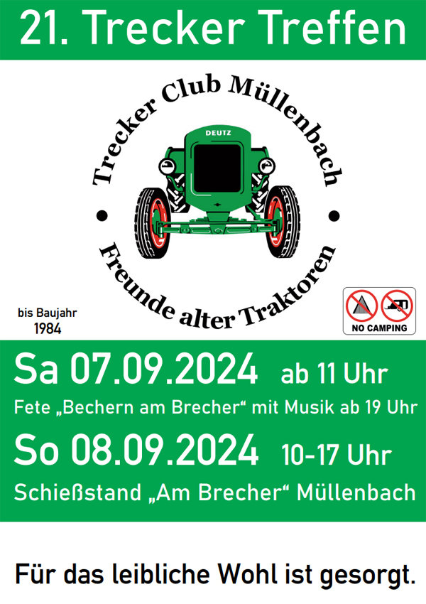 MARIENHEIDE 21. Treckertreffen in Müllenbach TEILEN Red; 03.09.2024, 13:30 Uhr Marienheide - Traktorfreunde treffen sich am 7. und 8. September. WERBUNG