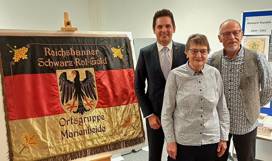 Vor 100 Jahren wurde zum Schutz der Republik und der Demokratie in Magdeburg von den damaligen Parteien der Mitte, der SPD, dem Zentrum und der liberalen DDP, die Organisation „Reichsbanner Schwarz-Rot-Gold“ gegründet. Und auch in Marienheide bildete sich danach eine Ortsgruppe. Im Jahr 1925 gab es ein großes Fest mit hunderten Besuchern aus dem ganzen Rheinland, mit einem Umzug, der Scharder Musikkapelle und dem Kirchenchor, bei dem die Ortsgruppe ihre Fahne weihte. Die Fahne hatte einen abenteuerlichen Weg vor sich: Durch die Weimarer Republik, die Nazizeit und die jetzige Bundesrepublik. In Köln wurde sie wiederentdeckt und schließlich fand sie ihren Weg zurück nach Marienheide.