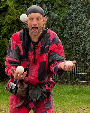 ["Kasper, der Gaukler" konnte seine Kunststücke zumindest zu Beginn bei strahlendem Sonnenschein vorführen.]