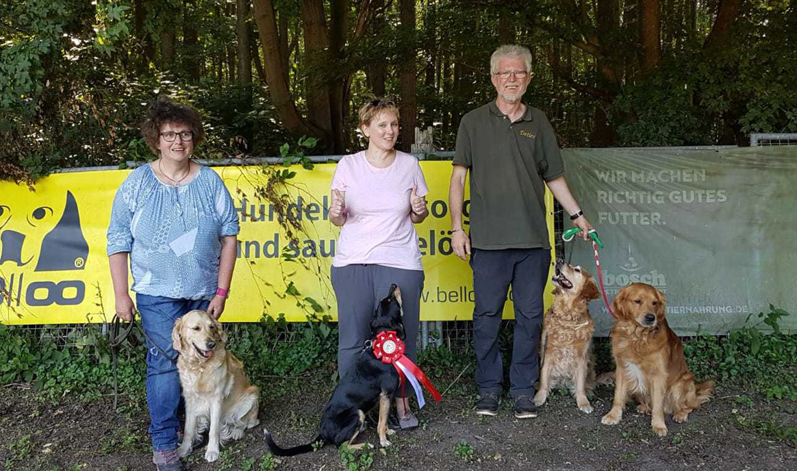 Golden Retrieverhündin Candy konnte mit ihrer Hundeführerin (HF) Anne Vornberger dabei in der Seniorenklasse zeigen, dass auch ältere Hunde diesen Hundesport mit viel Spaß, Harmonie und Präzision ausüben können. Sie siegte in der Klasse "Senioren" und holte den Wanderpokal nun für ein Jahr zum GHSV Wildbahn nach Marienheide. Golden Retriever Rüde Bolle startete im Beginner Parcours mit Herrchen Detlev Vornberger. Trotz voller 100 Punkte, die das Team maximal erreichen kann, waren die beiden etwas langsamer als das Gewinnerteam aus Halver, freuten sich aber über den zweiten Platz in dieser Klasse.