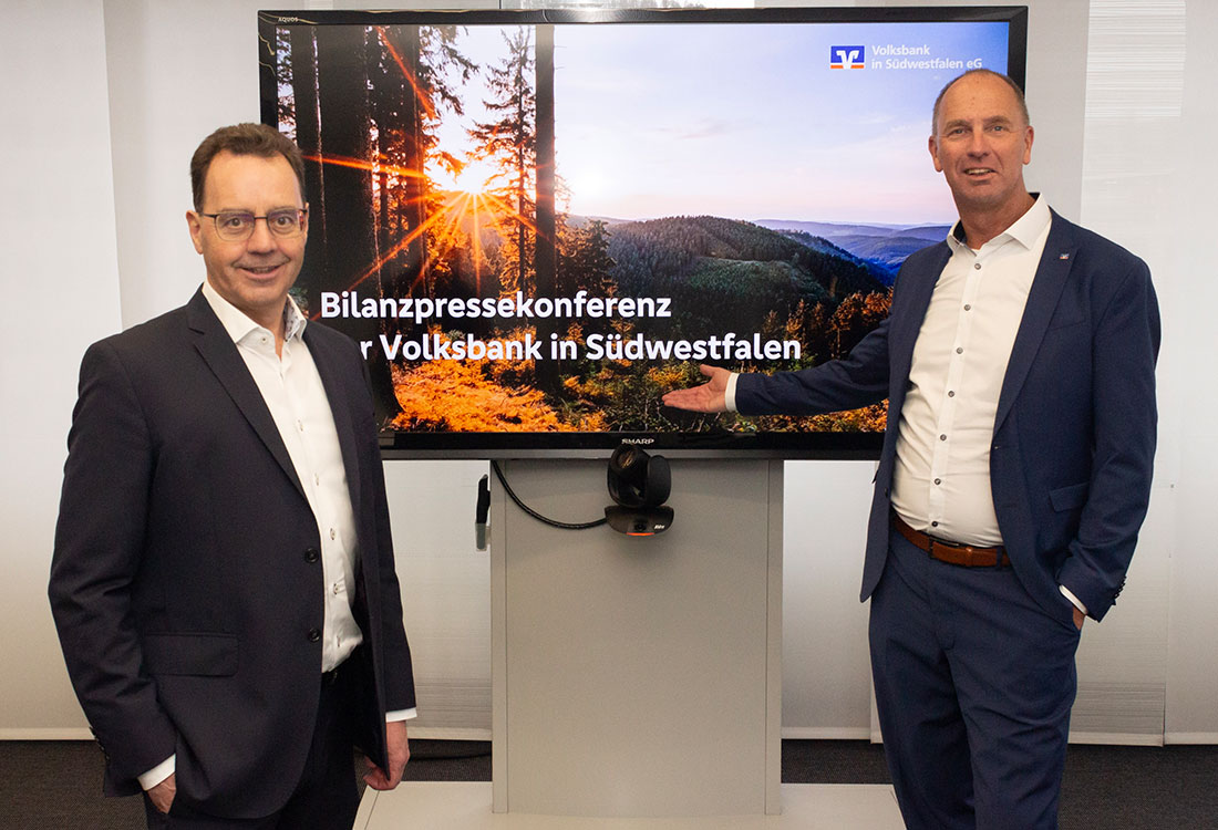 Die Volksbank in Südwestfalen verzeichnet ein erfolgreiches Geschäftsjahr 2024. In einem herausfordernden Umfeld hat sie ihre starke Marktposition in der Region dank eines auf Kundennutzen und solidem Wachstum basierenden Geschäftsmodells weiter ausgebaut. Das Kundengesamtvolumen steigt auf rund neun Milliarden Euro – der höchste Wert in der Geschichte der Bank. Aufgrund der guten Geschäftsentwicklung stellen Vorstandssprecher Roland Krebs und Vorstandsmitglied Jens Brinkmann den Genossenschaftsmitgliedern die Ausschüttung einer erhöhten Dividende von vier Prozent in Aussicht. Dies teilt die Volksbank Südwestfalen mit.