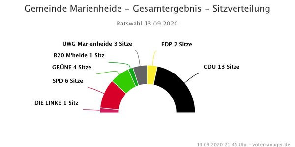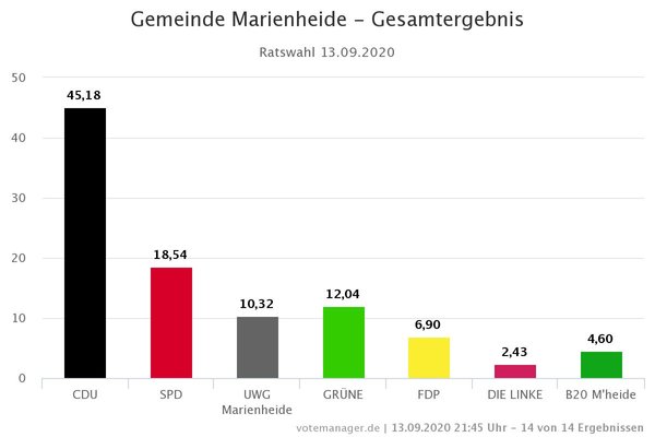 Marienheide - Hier finden Sie aktuell die Ergebnisse der Kommunalwahl 2020 für die Gemeinde Marienheide mit sämtlichen Zahlen und Fakten - auch aus den einzelnen Wahlbezirken.