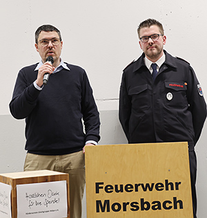 [Bürgermeister Jörg Bukowski (li.) und Holpes Löschgruppenführer Florian Leidig.]