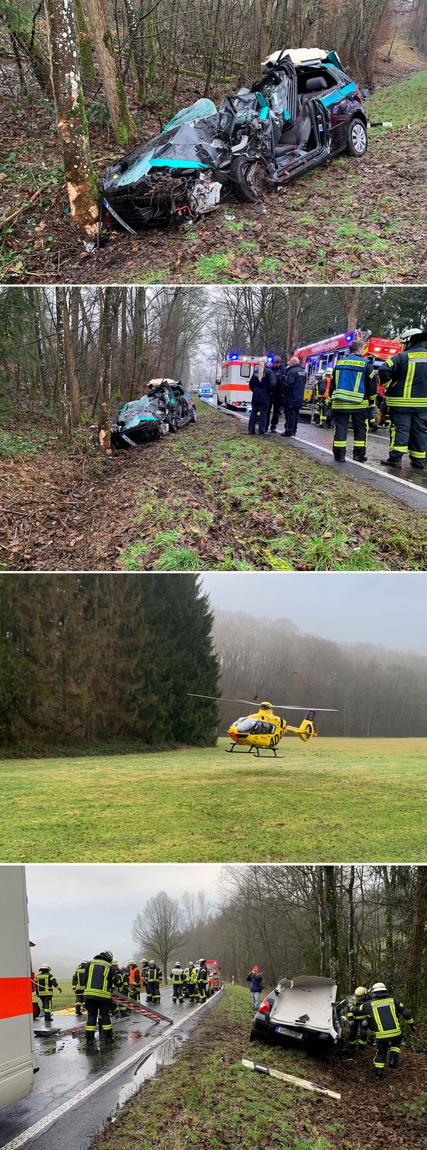 Morsbach – Feuerwehr muss junge Frau aus zerstörtem Auto befreien – Rettungshubschrauber fliegt Schwerverletzte in Klinik.
