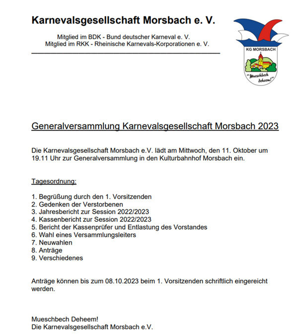 Generalversammlung der KG Morsbach
