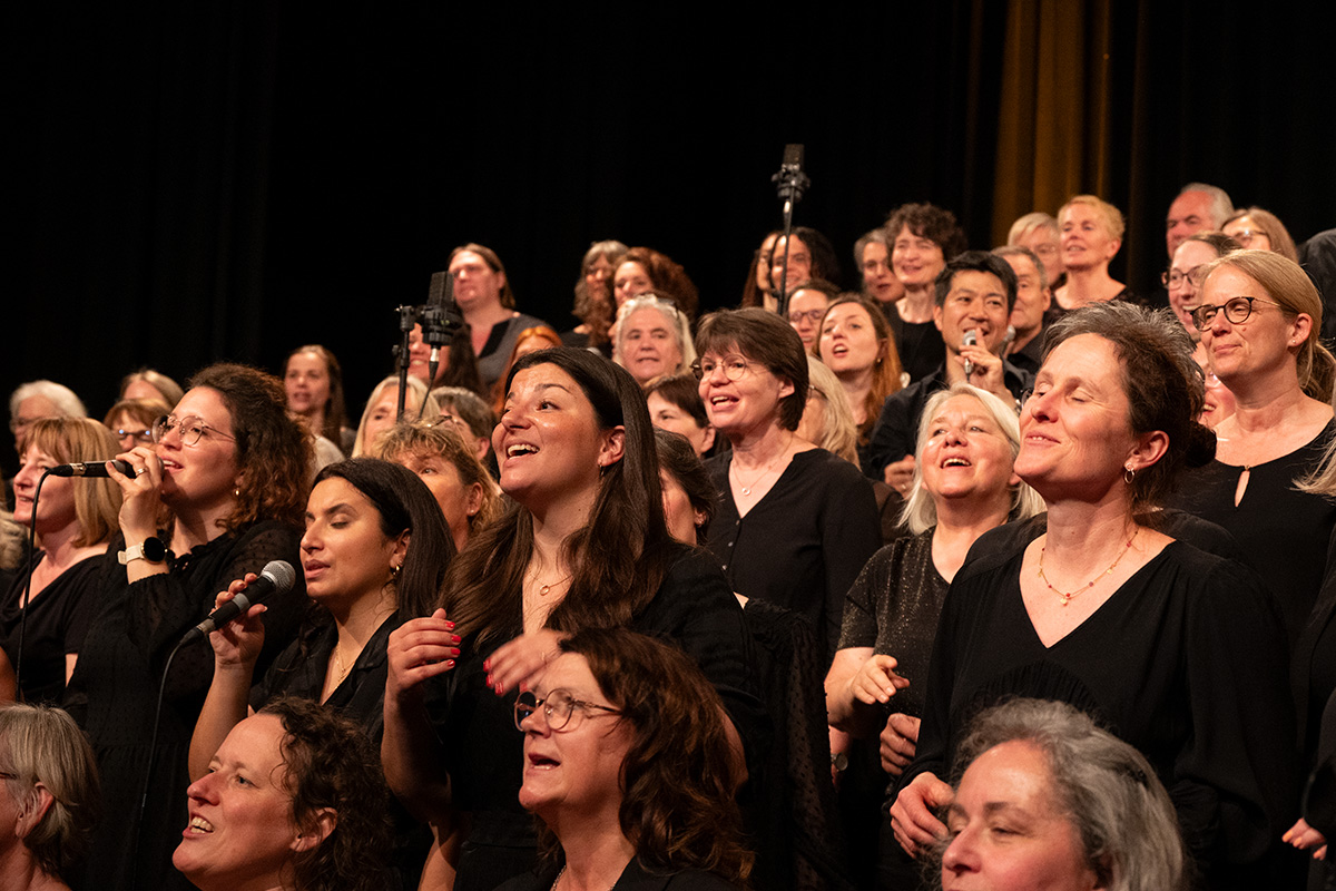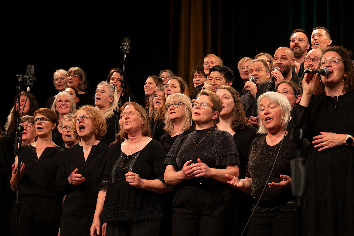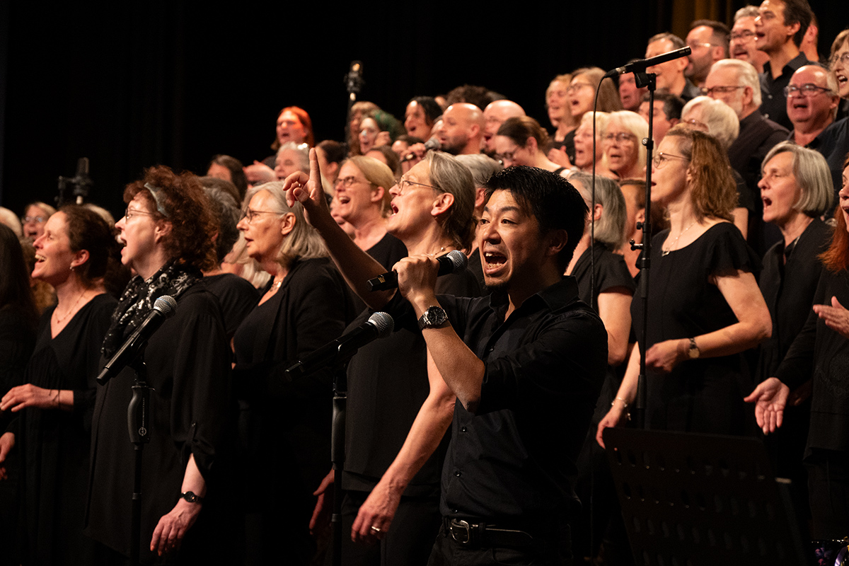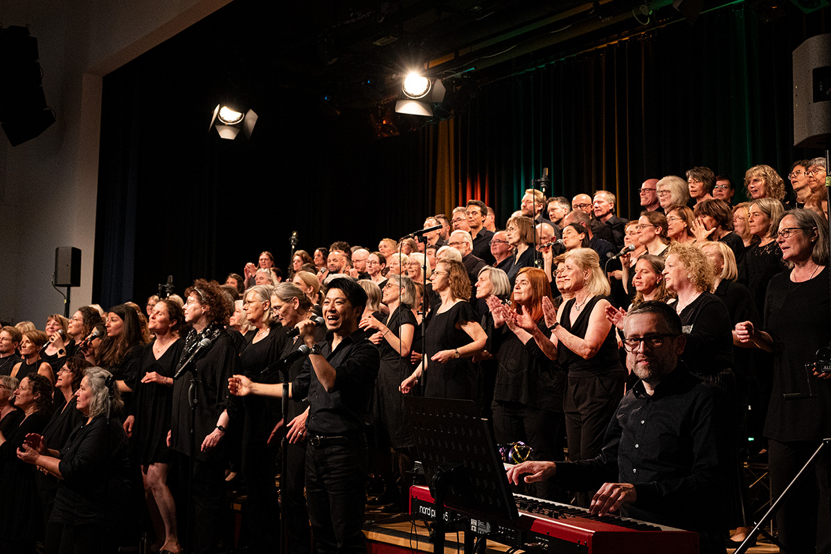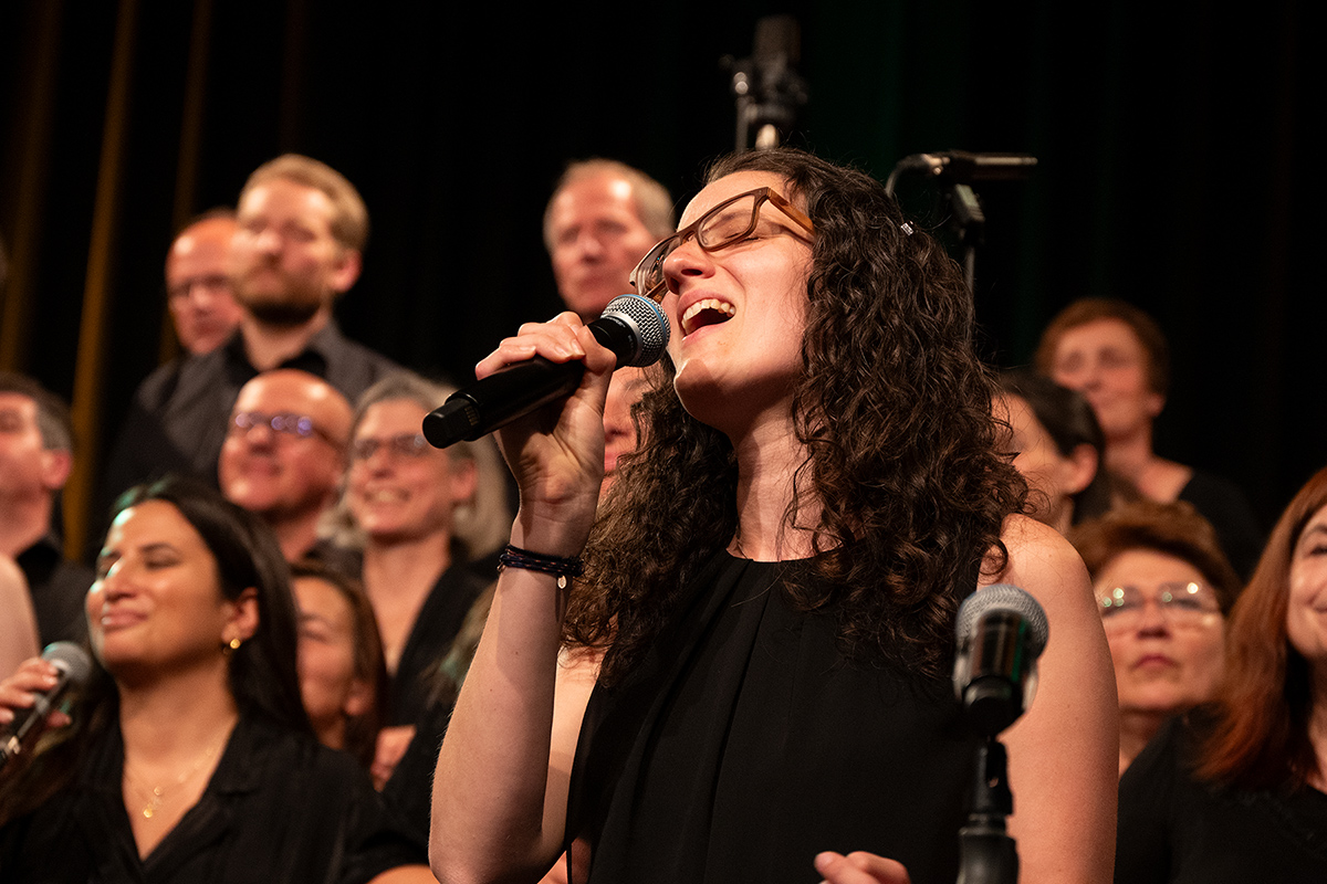 Der Groove der Andrea Crouch-Stücke habe ihn nicht losgelassen, so Dillenhöfer, bevor er mit seinem Chor „Soon and very soon“ und „Jesus is the answer“ anstimmte. Viele seiner Generation würden diese Lieder sicher kennen - da dürfe gerne mitgesungen werden. „Wir verstehen uns nicht als Vortragschor, sondern als Mitsingchor“. Sein Tipp ans Publikum, um noch mehr selbst zu singen: „Dann müsst ihr eben zu Tine in den Chor - ihr könnt aber auch gerne nach Stuttgart kommen.“
