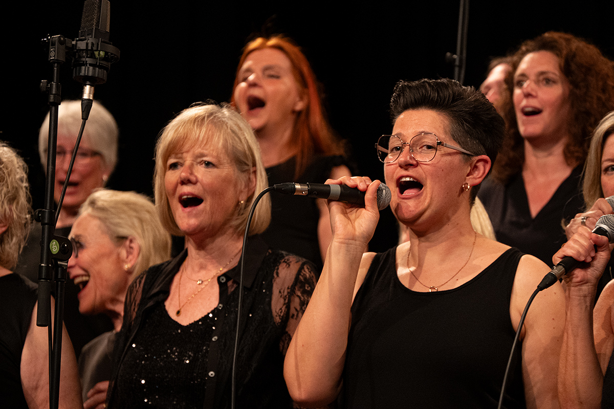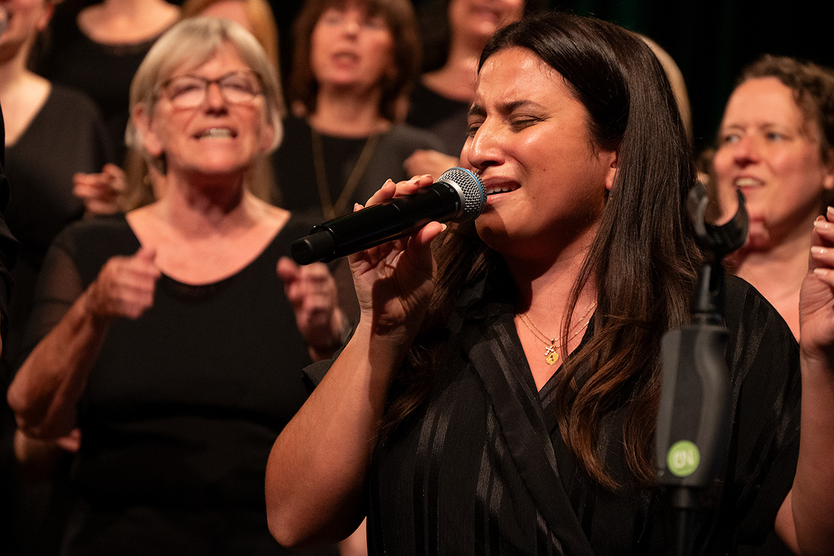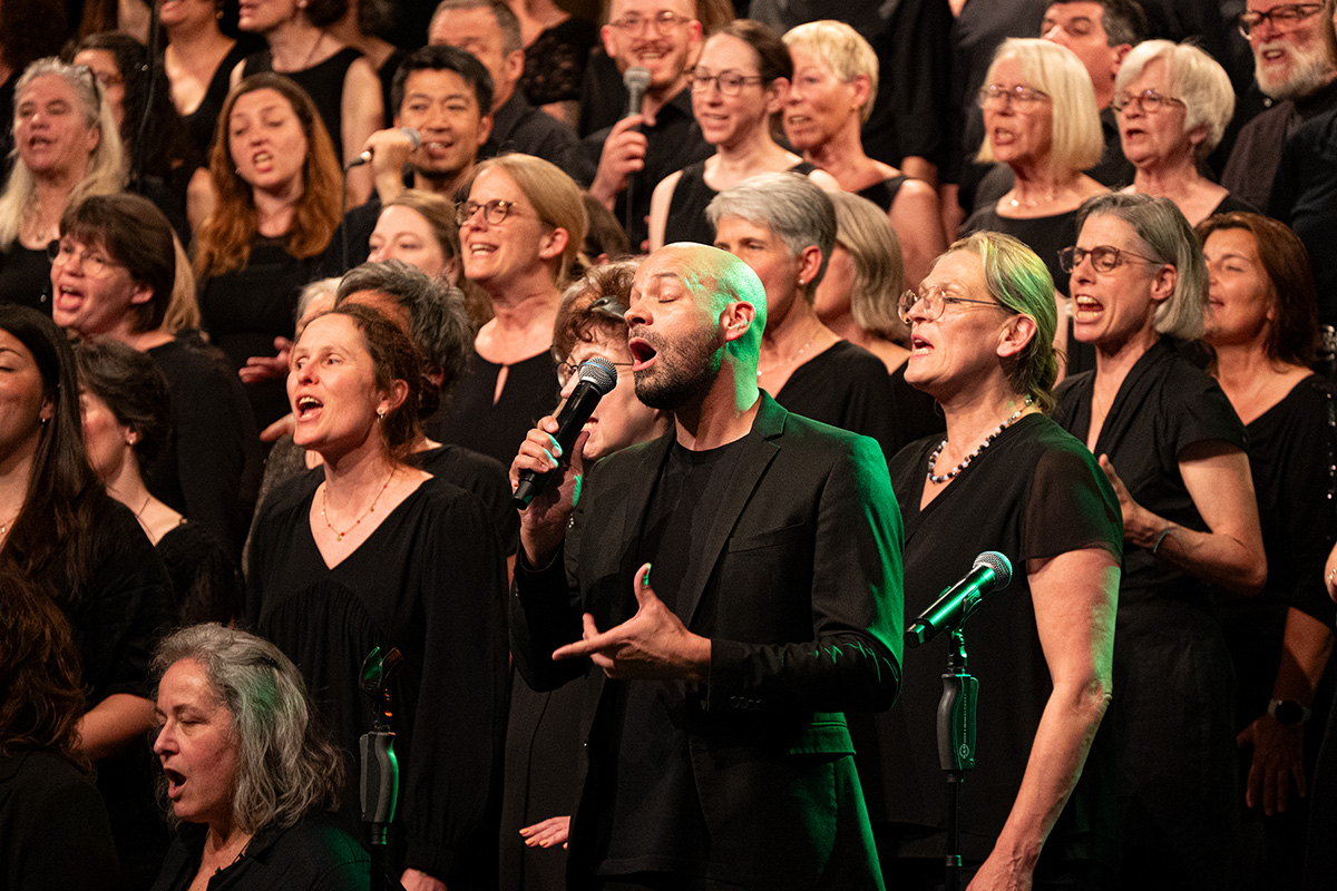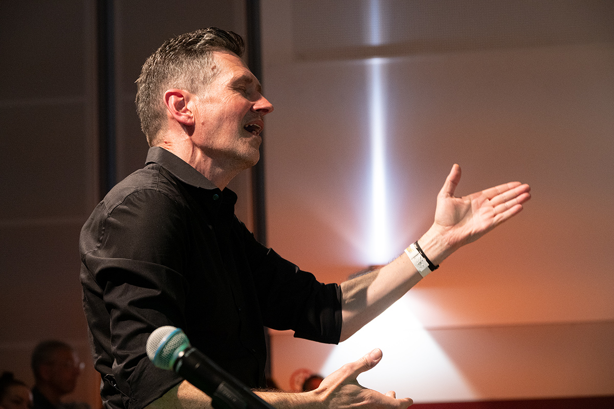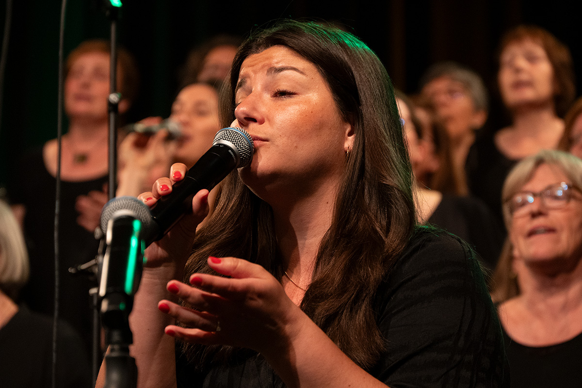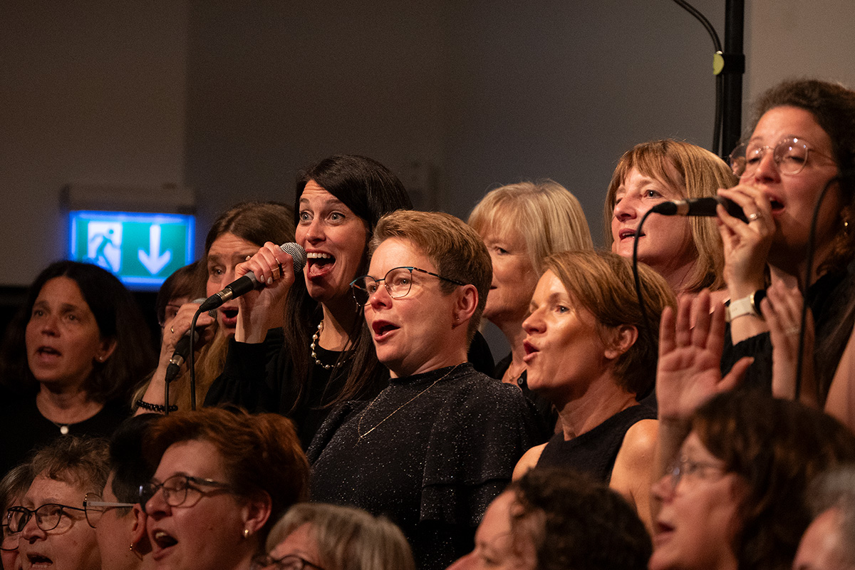 Der Groove der Andrea Crouch-Stücke habe ihn nicht losgelassen, so Dillenhöfer, bevor er mit seinem Chor „Soon and very soon“ und „Jesus is the answer“ anstimmte. Viele seiner Generation würden diese Lieder sicher kennen - da dürfe gerne mitgesungen werden. „Wir verstehen uns nicht als Vortragschor, sondern als Mitsingchor“. Sein Tipp ans Publikum, um noch mehr selbst zu singen: „Dann müsst ihr eben zu Tine in den Chor - ihr könnt aber auch gerne nach Stuttgart kommen.“