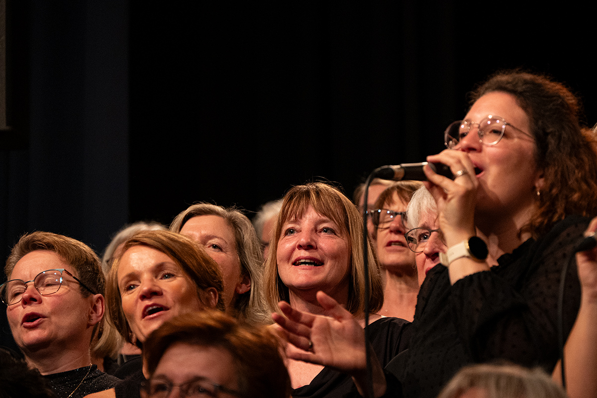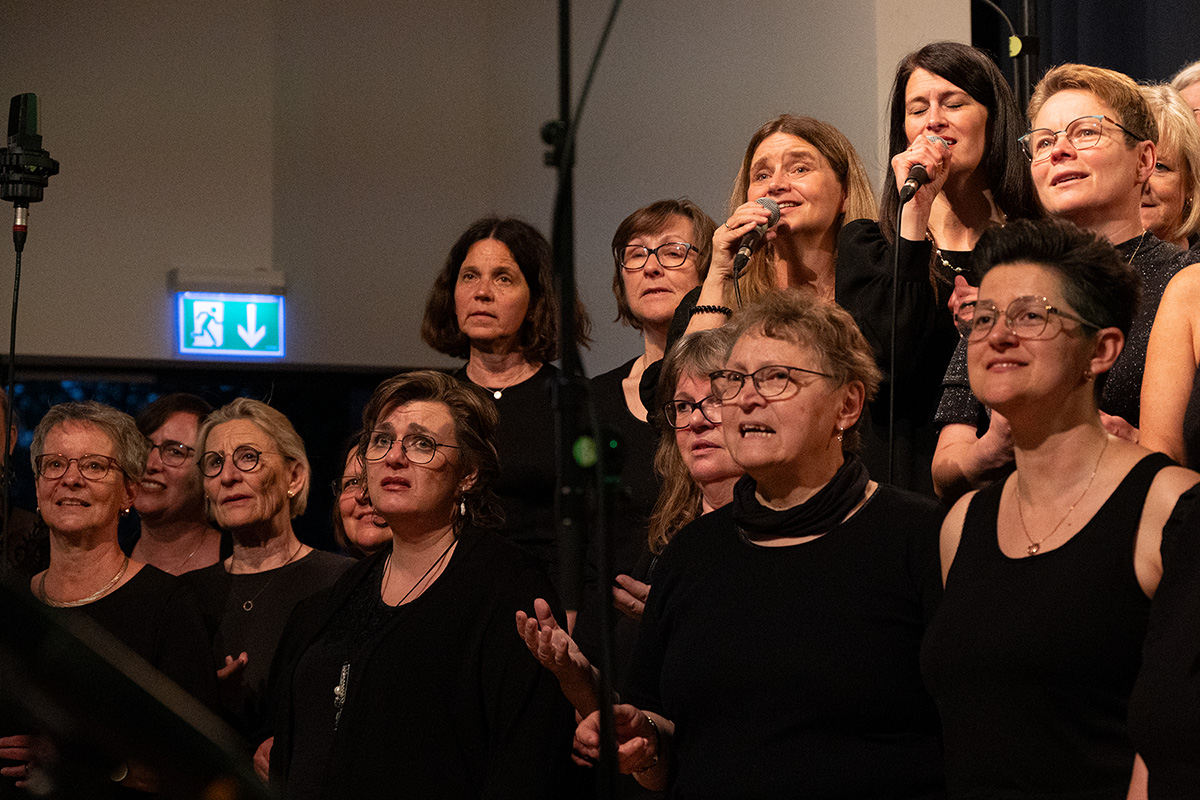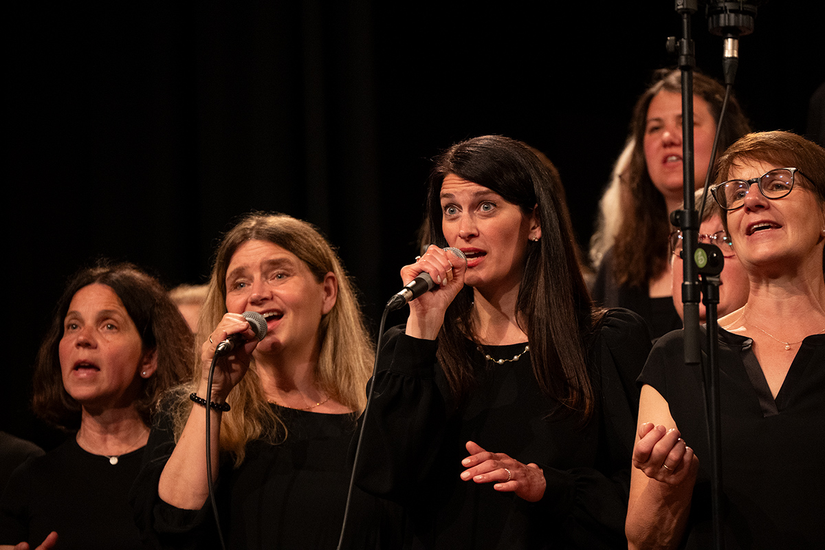 Zwischendurch ein Dirigenten- und Pianisten-Wechsel. Tine Hamburger leitet gemeinsam mit Anna Seibert, die auch am Keyboard begleitete, den Gospelchor der Evangelischen Kirchengemeinde Denklingen „Lifted Hands“. Die Tasten übernahm vom Stuttgarter Chor „Gospel im Osten“ Alex Pfeiffer und Chorleiter Thomas Dillenhöfer dirigierte.