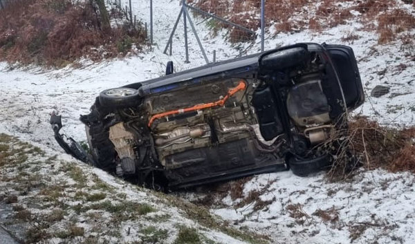 [Foto: privat --- Auf dem Zubringer zwischen Derschlag und Sengelbusch verunglückte dieses Fahrzeug.]