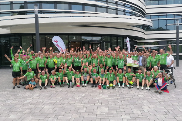 Wenn rund 150 Menschen mit grünen Trikots und gelben Helmen auf ihren Rädern durchs Oberbergische fahren, dann macht das durchaus was her. Unterwegs sind sie dabei nicht nur, um sich sportlich zu betätigen. Unterwegs sind sie vor allem für den guten Zweck – und werden dabei auch von dem ein oder anderen Prominenten unterstützt. Ob Fußballtrainer-Legende Felix Magath, Fußball-Weltmeister Hans-Josef „Jupp“ Kapellmann oder auch die Biathlon-Olympiasiegerinnen Petra Behle und Uschi Disl: sie alle unterstützen die „Tour der Hoffnung“, bei der Spenden für krebskranke Kinder gesammelt werden.