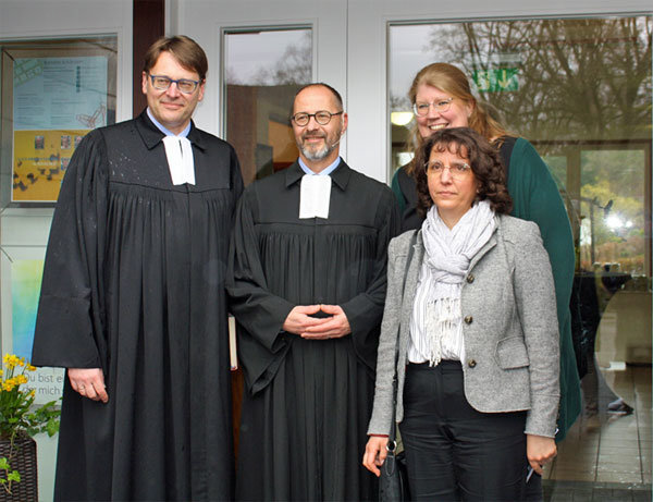 [Superintendent Pfarrer Michael Braun (v.li.) gemeinsam mit Pfarrer Michael Kalisch, Stephanie Schönborn und Heike Müller von der Emmaus-Kirchengemeinde Wiedenest-Derschlag.]