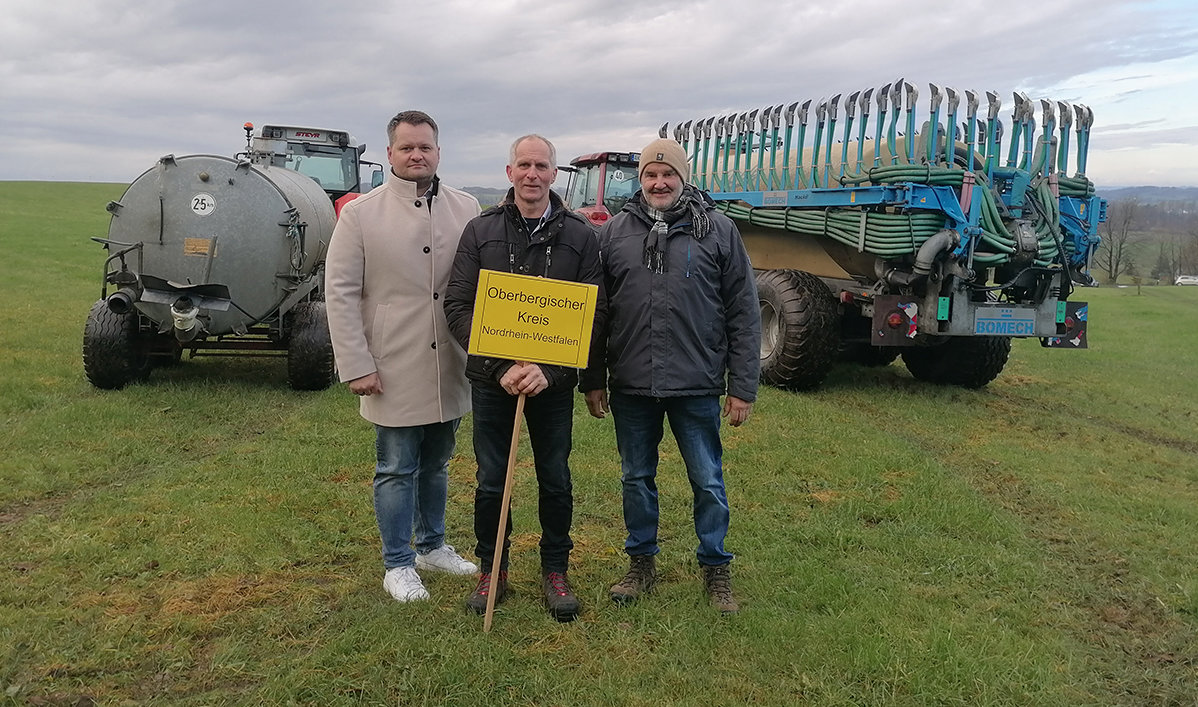 Eigentlich hatten die Landwirte der „Mittelgebirgsallianz“ vor, über die Gülleausbringung mit sogenannten Breitverteilern im Mittelgebirge zu informieren und gleichzeitig an die heimischen Landtagsabgeordneten zu appellieren, sich für die Änderung im Gesetz in Ausnahmefällen auf Grünland einzusetzen – denn ab dem 1. Februar 2025 sei es für alle Landwirte verpflichtend, den Wirtschaftsdünger Gülle auf Grünland bodennah und streifenförmig auszubringen. Verbunden sei damit aber nicht nur eine „aufwendige Technik“, wie Franz Bellinghausen als Vorsitzender der Kreisbauernschaft Oberberg sagte, sondern auch eine „erhebliche Kostensteigerung“.