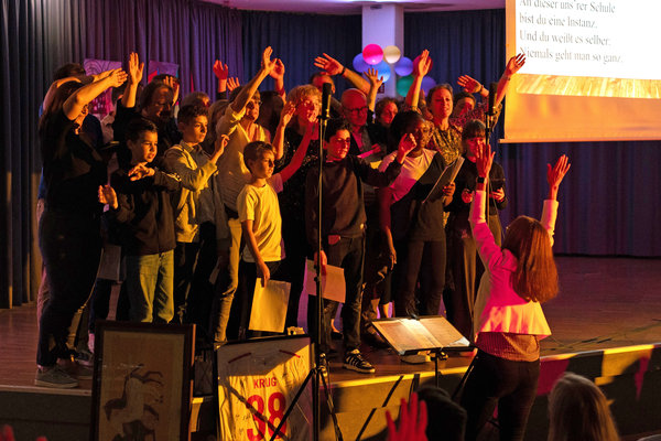 Die Veranstaltung klang aus mit einem musikalischen Beitrag des Lehrer-Schüler-Projektchors, einer Text-Variation des Liedes „An Tagen wie diesen“.