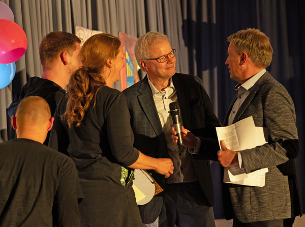 Im Rahmen eines Festaktes im Pädagogischen Zentrum wurde der noch bis Ende Juli amtierende Leiter der Gesamtschule Marienheide, Wolfgang Krug, in den Ruhestand verabschiedet. Schüler, Eltern, Vertreter der Gemeinde und der Bezirksregierung Köln sowie aktuelle und ehemalige Kolleginnen und Kollegen erwiesen ihm die Ehre. Umrahmt vom schuleigenen Orchester „Mamba“ unter der Leitung von Alexandra Diedrich und unter der Event-Regie von Moderator Christoph Straube, Krugs Nachfolger, wechselten die Rede- und Grußbeiträge sowie sportliche und musikalische Darbietungen.