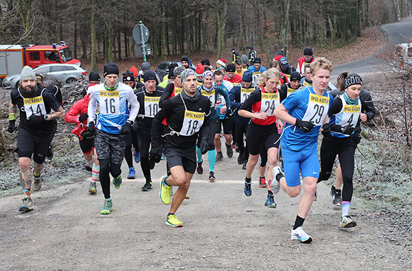 Das Thermometer zeigte vier Grad unter Null als sich die 38 hartgesottenen Teilnehmer wie immer ab dem Autowander-Parkplatz Dahler Brücke auf die 3,8 Kilometer lange Distanz über Wald- und Wirtschaftswege hinauf in Richtung Unnenberg machten. Immerhin hat es die anspruchsvolle Strecke, auf der es gleich 226 Höhenmeter zu überwinden gilt, richtig in sich. Wolfgang Gaudich vom veranstaltenden TVRM war mit 75 Jahren der älteste Teilnehmer und ging sicherheitshalber mit Walkingstöcken auf die Strecke. „Ich freue mich richtig“, war er froh, dass es nach zwei Jahren Pause endlich wieder losging.