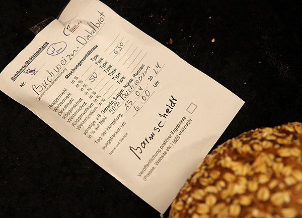 „Die Kriterien für die Prüfung sind so aufgebaut, dass sie dem Kunden im Laden entsprechen“, sagt Wegner. „Ich beginne mit der äußeren Betrachtung des Brotes. Oberflächen und Krusteneigenschaften werden genau unter die Lupe genommen. Wenn ein Brot grobe Mängel aufweist, fällt es aus der Wertung heraus. In diesem Fall erhält der Bäcker keine Urkunde.“ Die Bewertungsskala reicht von „gut“ bis „sehr gut“. „Gut“ bedeutet kleine Mängel, während „sehr gut“ fehlerfrei ist. Die Ergebnisse werden im Internet unter www.innungsbaecker.de veröffentlicht.