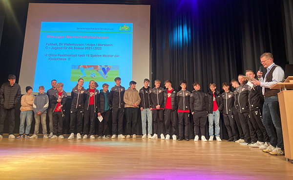 Die Kinder und Jugendlichen, die das Deutsche Olympische Sportabzeichen erfolgreich absolviert haben, erhielten bei der Übergabe ein Tombola-Freilos mit der Chance, einen der fünf Hauptgewinne im Gesamtwert von 100 Euro zu erlangen. Darüber hinaus übernimmt der GSV für Jeden, der eine Urkunde erhalten hat, den Jahresmitgliedsbeitrag 2023. Die Ehrung der Mannschaftsleistung erhielt die C-Juniorenmannschaft (U15) der SG Wallerhausen/Holpe/Morsbach – sie wurde nach 16 Spielen ohne Punktverlust Meister der Kreisklasse.