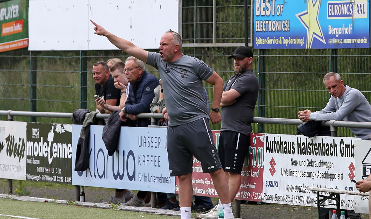 Beim Sparkassen-Cup unterlag man dem B-Ligisten TuS Weiershagen, im Kreispokal schied man gegen den A-Ligisten VfR Wipperfürth aus. Der Landesliga-Spielplan versprach zudem keine Gelegenheit für einen Motivationsschub. Mit den Topteams Borussia Lindenthal-Hohenlind und SSV Bornheim standen gleich zwei Kracher im Programm und – wie Mühlmann bereits einkalkulierte – die Wiehler gingen als Tabellenletzter punktlos in den dritten Spieltag. Unruhe kam dennoch nicht auf. „Es ist so gekommen, wie wir es prognostiziert haben. Wir standen nach den zwei Niederlagen sofort unter Druck, aber wir waren darauf vorbereitet. Der Fokus war immer nach unten gerichtet“, sagt Mühlmann.