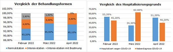 Das Gesundheitsamt des Oberbergischen Kreises hat die Hospitalisierungen der drei Vormonate genauer unter die Lupe genommen. Hierbei zeigt sich, dass der überwiegende Teil der hospitalisierten Personen auf der Normalstation behandelt wurde. Aufgenommen wurden in diese Statistik nur Menschen, die PCR-positiv in einem Krankenhaus in und außerhalb des Kreisgebiets behandelt wurden. Zudem wurden nicht nur die Behandlungsformen ausgewertet, sondern auch der Grund für die Hospitalisierung der stationär behandelten Oberberger. Hierbei wurde betrachtet, ob COVID-19 eine Nebendiagnose oder die Ursache für die Hospitalisierung war.