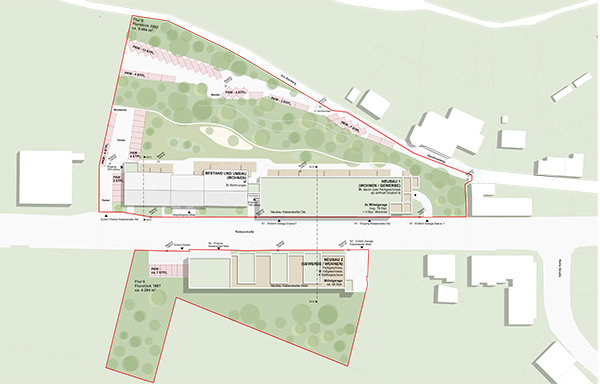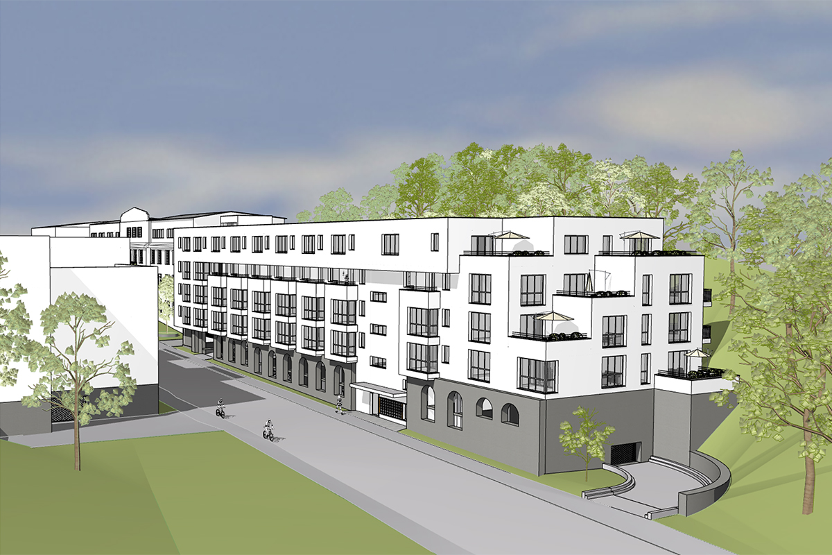 Nicht mehr in den Plänen vorhanden ist der Querriegel mit zwei Gebäudeflügeln (24 und 28 Wohnungen), der in sich in den Hang erstrecken sollte. In der Hanglage soll stattdessen für alle Bewohner beider Gebäude ein Freiraum für alle Generationen entstehen. Zudem plant man Stellplätzen für Autos. „Der Wohnungsbaumarkt hat sich stark verschoben. Wir kriegen Eigentumswohnungen einfach nicht mehr verkauft“, begründet Deyerl die Neukonzipierung, der Markt sei kaum noch einzuschätzen.
