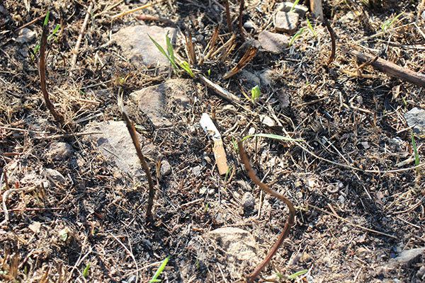 [Weggeworfene Zigaretten sind häufig die Ursache für die Waldbrände. Auf den trockenen Böden und mit ein wenig Wind kann schnell ein Feuer entfacht werden.]