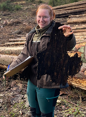 [Häufig findet Försterin Hannah Pracht abgestorbene Rinde. Der Borkenkäfer hat in der Region gewütet.]