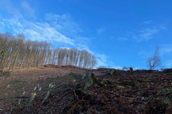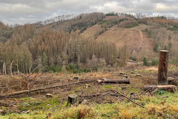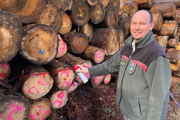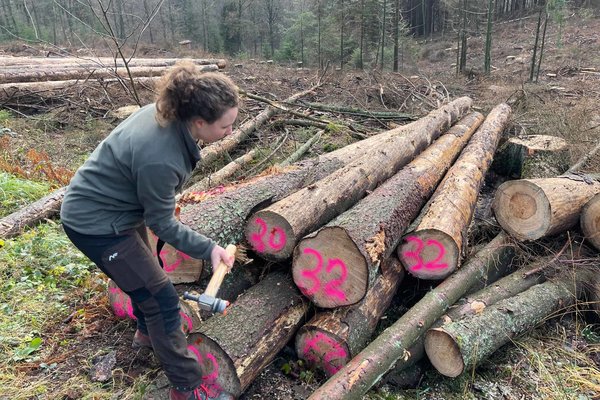 „Der Aufwand hat sich in diesem Jahr verachtfacht, alleine ist die Arbeit nicht mehr zu bewältigen“, berichtet der Förster und nennt damit auch den Grund, warum ihm jüngst drei Mitarbeiter zur Seite gestellt wurden. Bei den sogenannten Hilfskräften handelt es sich um studierte Förster. Weitere Tätigkeiten - wie die eigentlich wichtige Aufforstung - bleiben trotz personeller Aufstockung derzeit auf der Strecke und müssen später mit Pflanzenbestand aus Baumschulen nachgeholt werden. Nach der morgendlichen Besprechung geht es dorthin, wo das Hauptarbeitsgebiet eines Försters liegt, in den Wald. Oberhalb von Hardt-Hanfgarten liegt das heutige Ziel von Christin Günther und Hannah Pracht, das sie mit ihrem geländegängigen Dienstwagen problemlos erreichen.