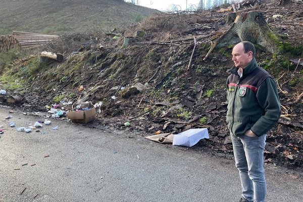 Bei der Weiterfahrt - inzwischen ist es Mittag - durch Cescottis Revier stößt der Förster auf ein Ärgernis, mit dem er seit Beginn der Pandemie verstärkt zu kämpfen hat: illegale Müllablagerung. Am Wegesrand des Lambachtals liegt allerlei Unrat. „Die Menschen misten während des Lockdowns aus und schmeißen ihren Müll vermehrt in die Natur“, sagt er verärgert und hat kein Verständnis für die Umweltsünden der Bürger. Ihm bleibt aber nichts weiter, als die Mitarbeiter des städtischen Bauhofs mit der Beseitigung des Unrats zu beauftragen.