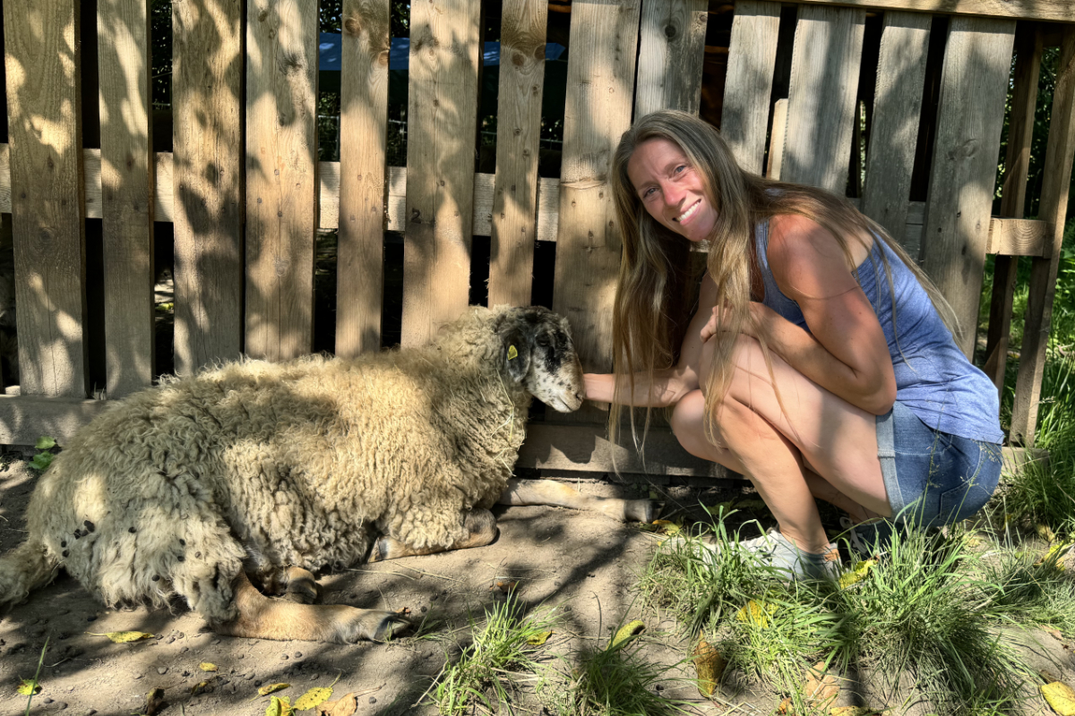 Auch wer einfach mal eine Auszeit genießen und nichts tun möchte, ist auf dem Alper Hof willkommen. Und genau das machen die vier Schafe auch. Die je zur Hälfte aus anderen TGI-Angeboten und dem Tierschutz stammenden Tiere haben derzeit einfach "keinen Bock" (Foto oben) und aalen sich trotz des sich nähernden Besuchs unbeeindruckt in der Mittagssonne. In einigen Metern Entfernung nimmt Mertens auf der Wiese Platz und beobachtet ihre Schützlinge ebenfalls völlig entspannt (Foto unten). Auch das kann helfen.