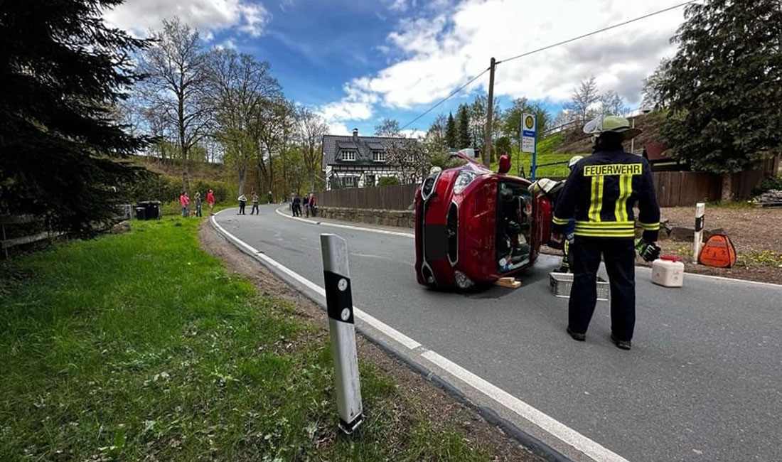 Zu einem Alleinunfall ist es am Sonntagnachmittag um 15:48 Uhr auf der L 304 in Hausgrund nahe der Kreisgrenze zum Rheinisch-Bergischen Kreis gekommen. Wie die Feuerwehr Lindlar mitteilt, rückte der Löschzug Lindlar zum Unfallort aus. Vor Ort waren außerem Polizei und der RTW Lindlar. Gemeldet war eine eingeklemmte Person in einem qualmenden Auto. Bei Eintreffen der Feuerwehr lag das Fahrzeug auf der Seite, quer über der Fahrbahn. Der Fahrer, laut Polizei ein 74-jähriger Mann aus Lindlar, war aus der Fahrtrichtung Kürten unterwegs, kam von der Straße ab, wurde laut Mitteilung aber anschließend wieder auf die Fahrbahn zurückgeschleudert. Das Auto kippte um und kam auf der Fahrerseite zum Liegen. Bei Eintreffen war der Fahrer bereits durch Ersthelfer aus dem Auto befreit worden, heißt es weiter. Gebrannt hat das Fahrzeug nicht. Die Feuerwehr musste nur noch verkehrssichernde Maßnahmen durchführen und Betriebsstoffe abstreiten.