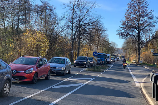 Die B 55 war während der Unfallaufnahme und der anschließenden Reinigung für etwa drei Stunden komplett gesperrt. Der Verkehr staute sich über mehrere Kilometer bis zum Stadtzentrum und in Gegenrichtung zurück. Im Einsatz waren neben dem Notarzt zwei Rettungswagen sowie das Unfallaufnahmeteam der Polizei.