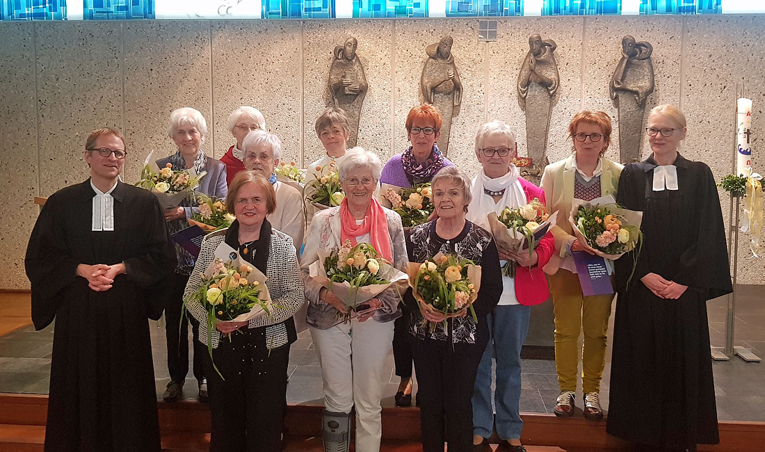 Mit dem Goldenen Kronenkreuz der Diakonie wurden in einem feierlichen Gottesdienst sieben Grüne Damen für ihre langjährigen ehrenamtlichen Dienste ausgezeichnet. Seit 25 Jahren dabei sind Anne Adolphs, Brigitte Gnacke, Waltrud Höfer, Käthe Junker, Andrea Paech, Elisabeth Pevec und Jutta Schreiber. Für ihre 20-jährige Zugehörigkeit wurde Erika Stieber geehrt, Hildegard Schmidt, Dagmar Winterberg und Hildegard Paulus sind seit 15 Jahren mit dabei.