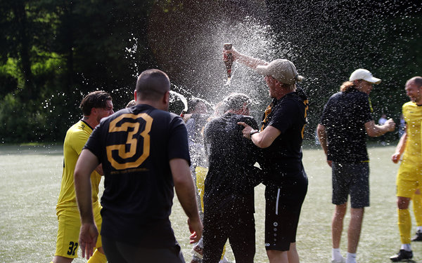 Das hat Seltenheitswert: Die Reserve von Eintracht Hohkeppel hat mit dem 3:1-Sieg gegen den Pulheimer SC den dritten Meistertitel hintereinander geschafft und ist ab sofort in der Landesliga vertreten. Allen Beteiligten fiel nach einer kräftezehrenden Saison ein großer Stein vom Herzen. „Das war eine Topleistung der Mannschaft, vor allen Dingen von der Mentalität her“, freute sich Coach Giuseppe Brunetto nach den ersten Bierduschen. Die Hälfte der Spieler verabschiedete sich gleich nach dem Abpfiff Richtung Flughafen, um sich in den Flieger Richtung Mallorca zu setzen. Brunetto war eher der stille Genießer und zog den Hut vor seinen Kickern. „Die Jungs haben das einfach großartig gemacht. Ein Riesendank geht auch an meinen Vorgänger, der einen großen Teil dazu beigetragen hat, dass es geklappt hat.“