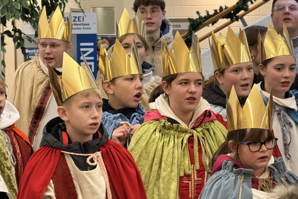 Seit dem 26. Dezember sind die Sternsinger in Gummersbach unterwegs, besuchen neben Altenheimen auch über 800 Haushalte. Dabei stand am Donnerstag für die Kinder eine besondere Tour an: so wurden neben dem Kreiskrankenhaus auf der Berstig auch die Polizeiwache und das Rathaus besucht. Zum Abschluss ging es dann noch ins benachbarte Kreishaus, wo Sozialdezernent Ralf Schmallenbach mit zahlreichen Donuts auf die Segensbringer wartete.