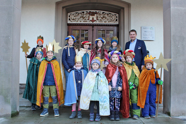 [In Bergneustadt wurden die Sternsinger am Rathaus von Bürgermeister Matthias Thul empfangen.]